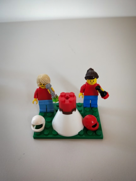 Two mates sit around a campfire, one holding a vape (left) and one smoking a cigarette (right). The motorbike helmets symbolise their reckless sense of youth. The vape-ing man says to the smoking man “You know those cigarettes will kill you one day, right?”. The smoking man chuckles and says jokingly “Yeah, but you know they won’t kill me”.